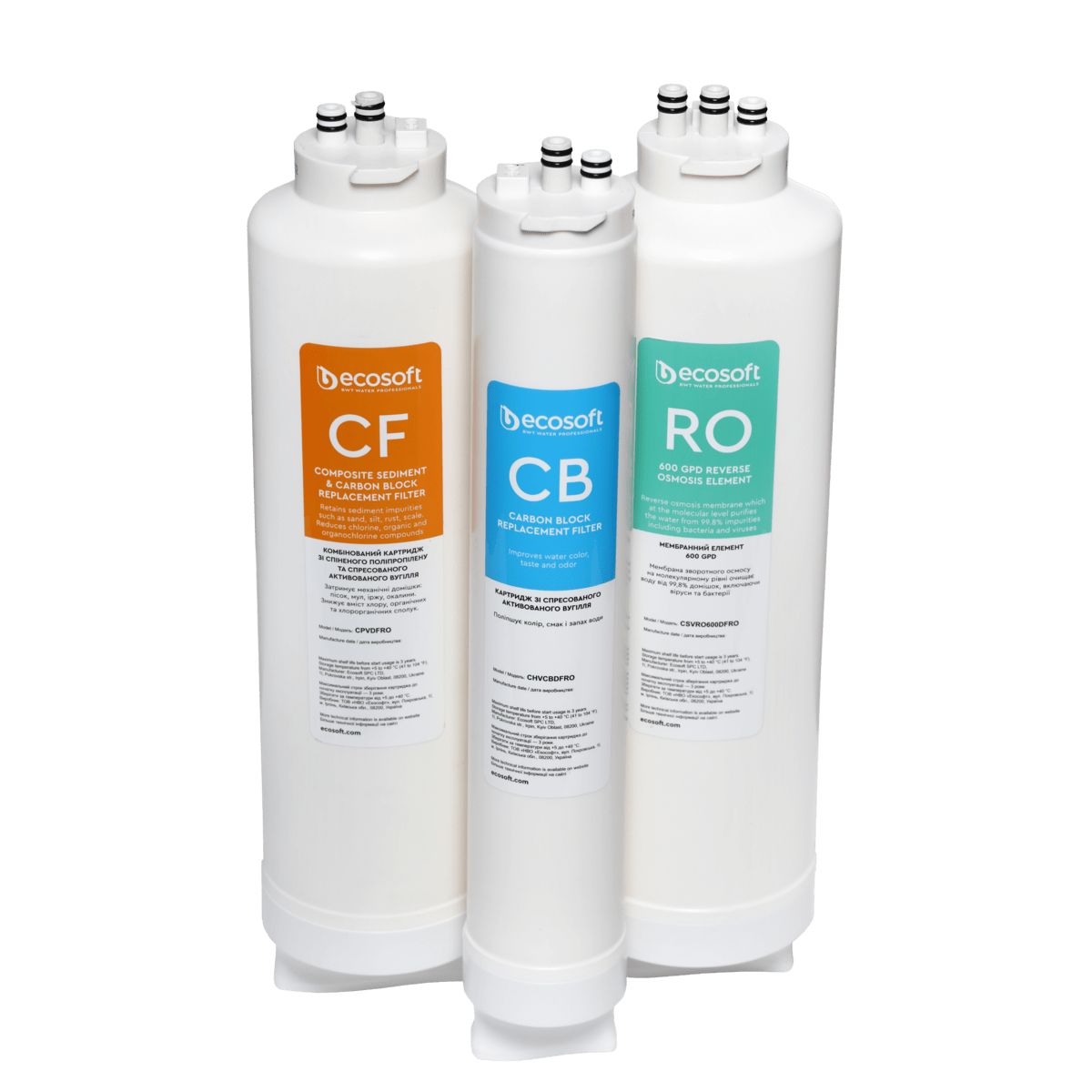 1. Kompleksinis CROSS filtrams skirtas „Ecosoft CF“ pirminis filtras pašalina nuosėdų priemaišas, tokias kaip smėlis, dumblas ir rūdys. Jis taip pat sumažina chloro, organinių medžiagų ir chlororganinių junginių kiekį. Kasetėje įdiegta FAST&DRY keitimo technologija, leidžianti greitai ir švariai pakeisti kasetę neatjungiant vandens tiekimo. Tačiau, kad būtų patogiau, rekomenduojame keitimo metu išjungti vandens tiekimą. III pakopa. Keičiamas kas 24 mėnesius.