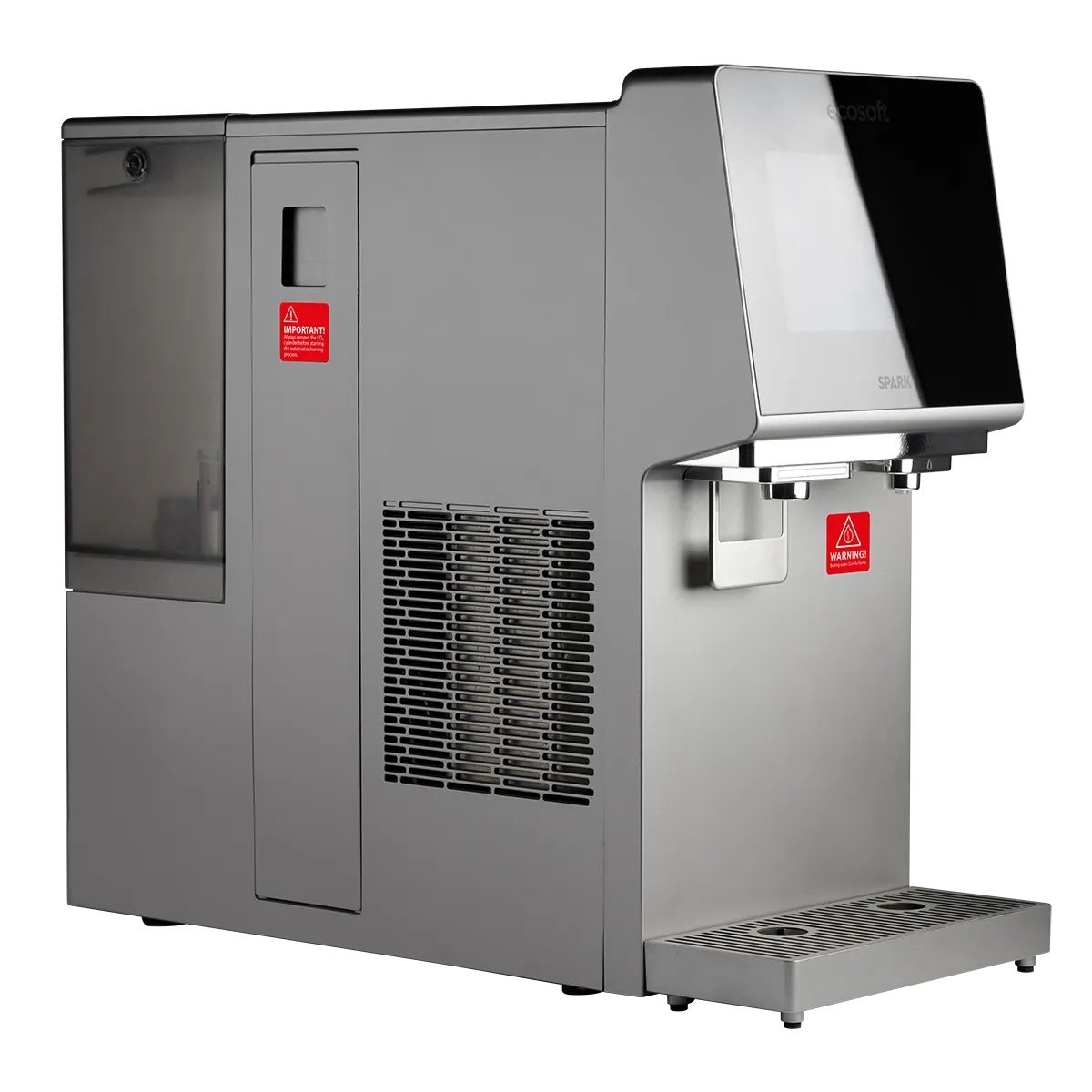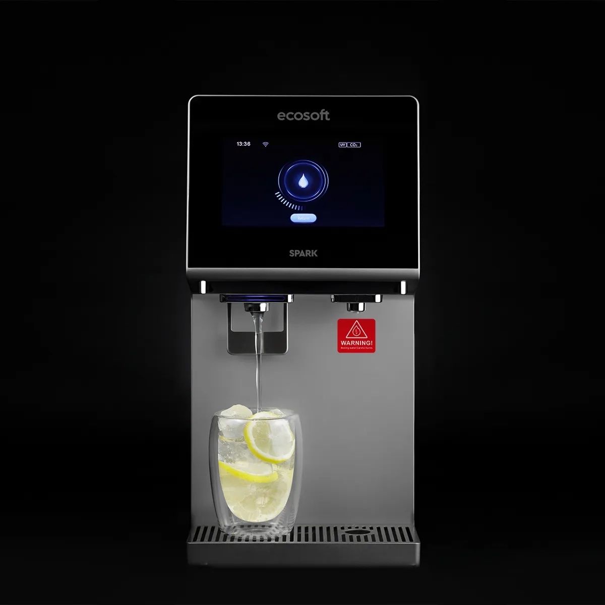 „Ecosoft SPARK“ išmanus stalviršinis atvirkštinio osmoso vandens dozatorius – tai kompaktiška „viskas viename“ sistema, tiekianti švarų, puikaus skonio vandenį įvairiais režimais: šaltą, šiltą, karštą, verdantį ir atšaldytą gazuotą. 4 pakopų atvirkštinio osmoso filtravimas pašalina iki 99 % priemaišų, užtikrindamas aukštą vandens kokybę kasdieniam naudojimui namuose ar mažame biure. Pilnaspalvis jutiklinis ekranas leidžia lengvai valdyti temperatūrą ir išpylimo tūrį, o realaus laiko TDS ir filtro būklės stebėjimas padeda sekti vandens kokybę.