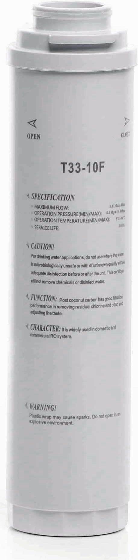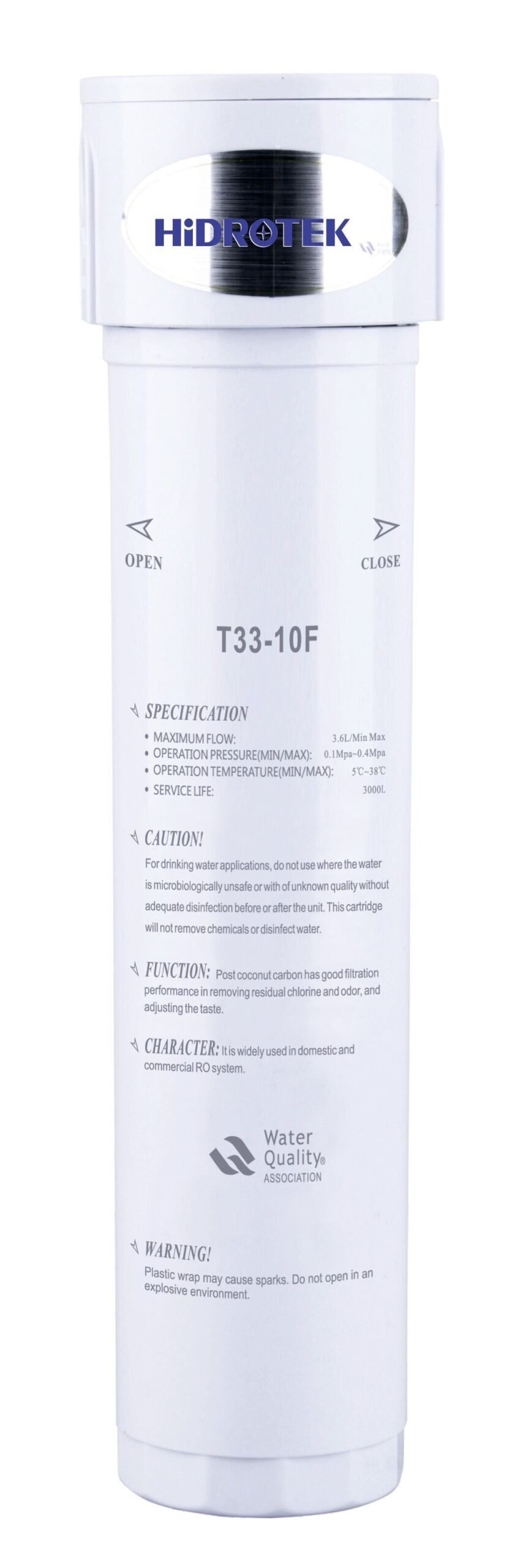 T33-10F – tai 10 colių standartinio dydžio post-coconut aktyvuotos anglies filtro kasetė, skirta galutiniam vandens valymui atvirkštinės osmozės (RO) sistemose. Tai paskutinis valymo etapas, užtikrinantis, kad vanduo būtų ne tik švarus, bet ir skanus.