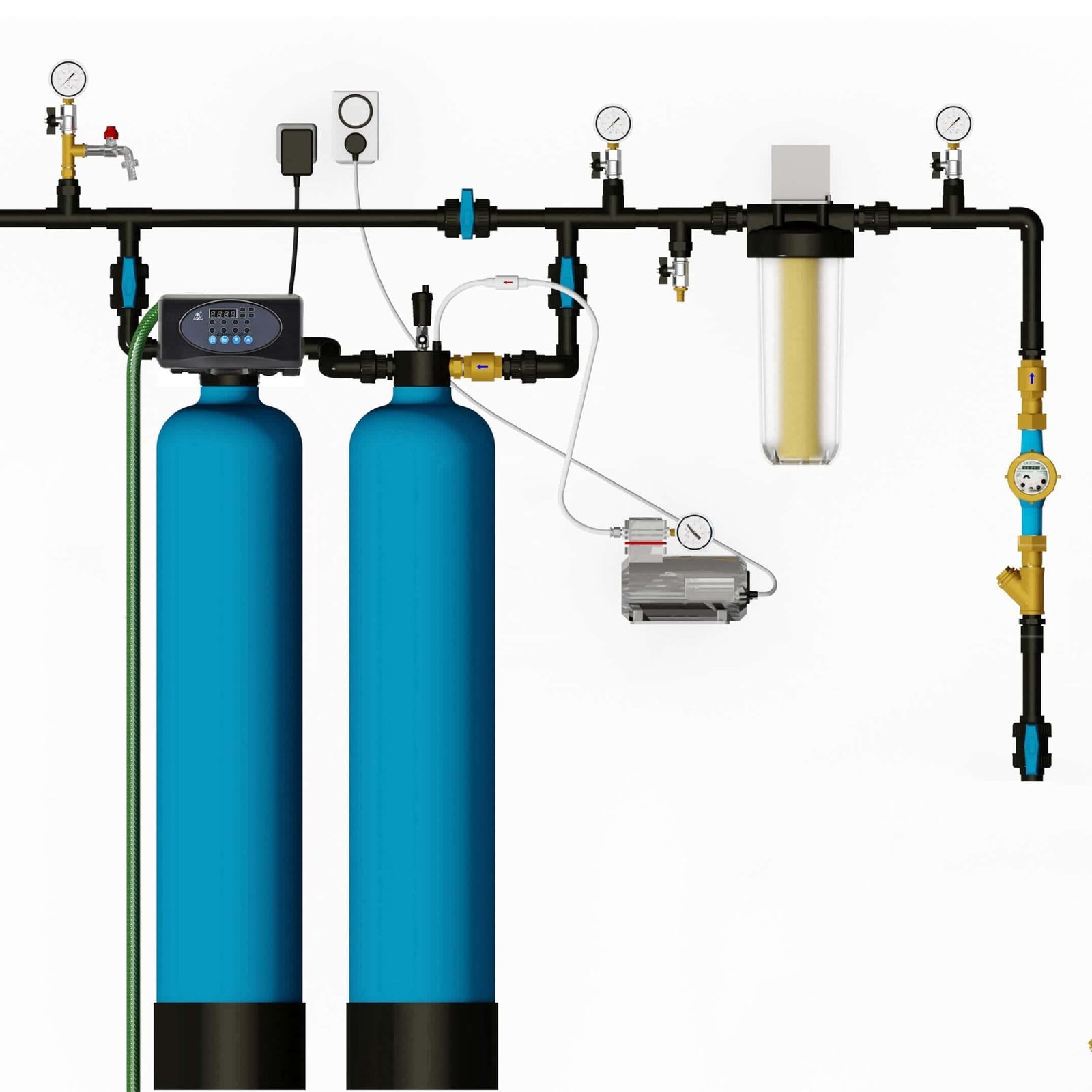 Nugeležinimo filtrai RUNXIN su oro kompresorium, laikmačiu ir oksidacine talpa IRON-RX-AIR (12×52)