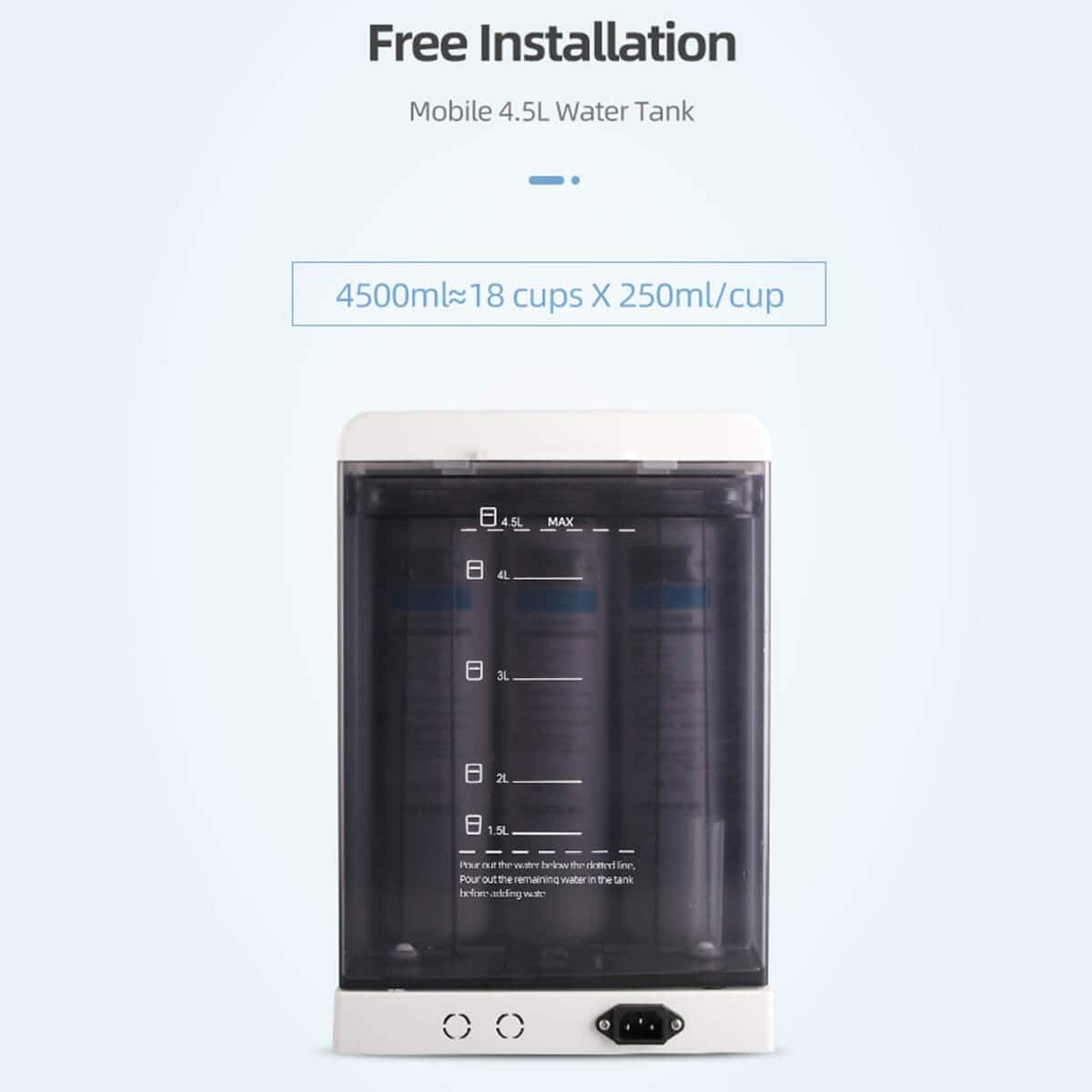 Atskiros neapdoroto vandens (4.5L) ir gryno vandens (2L) talpos