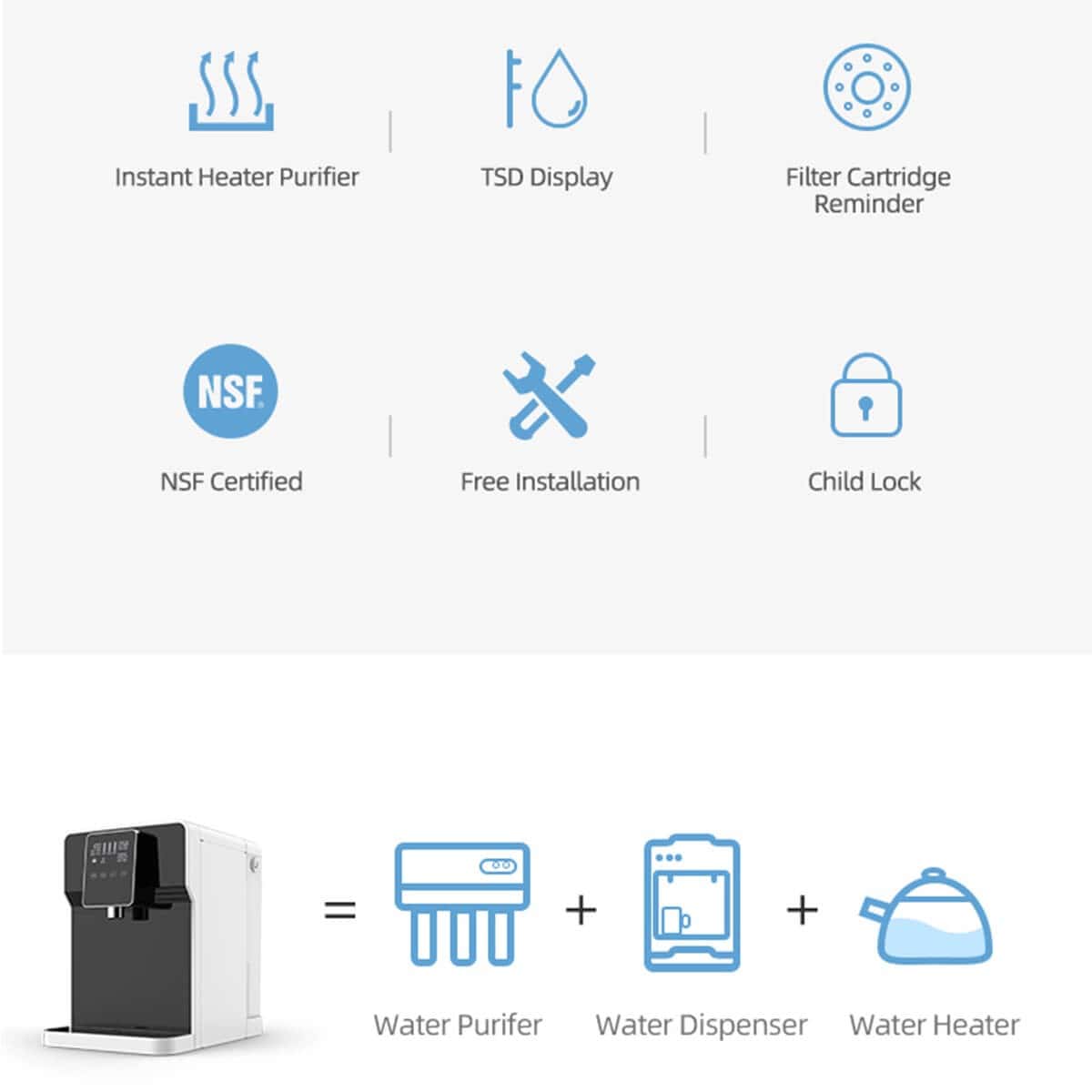 Stalinis vandens dozatorius su šildytuvu buičiai, biurams.