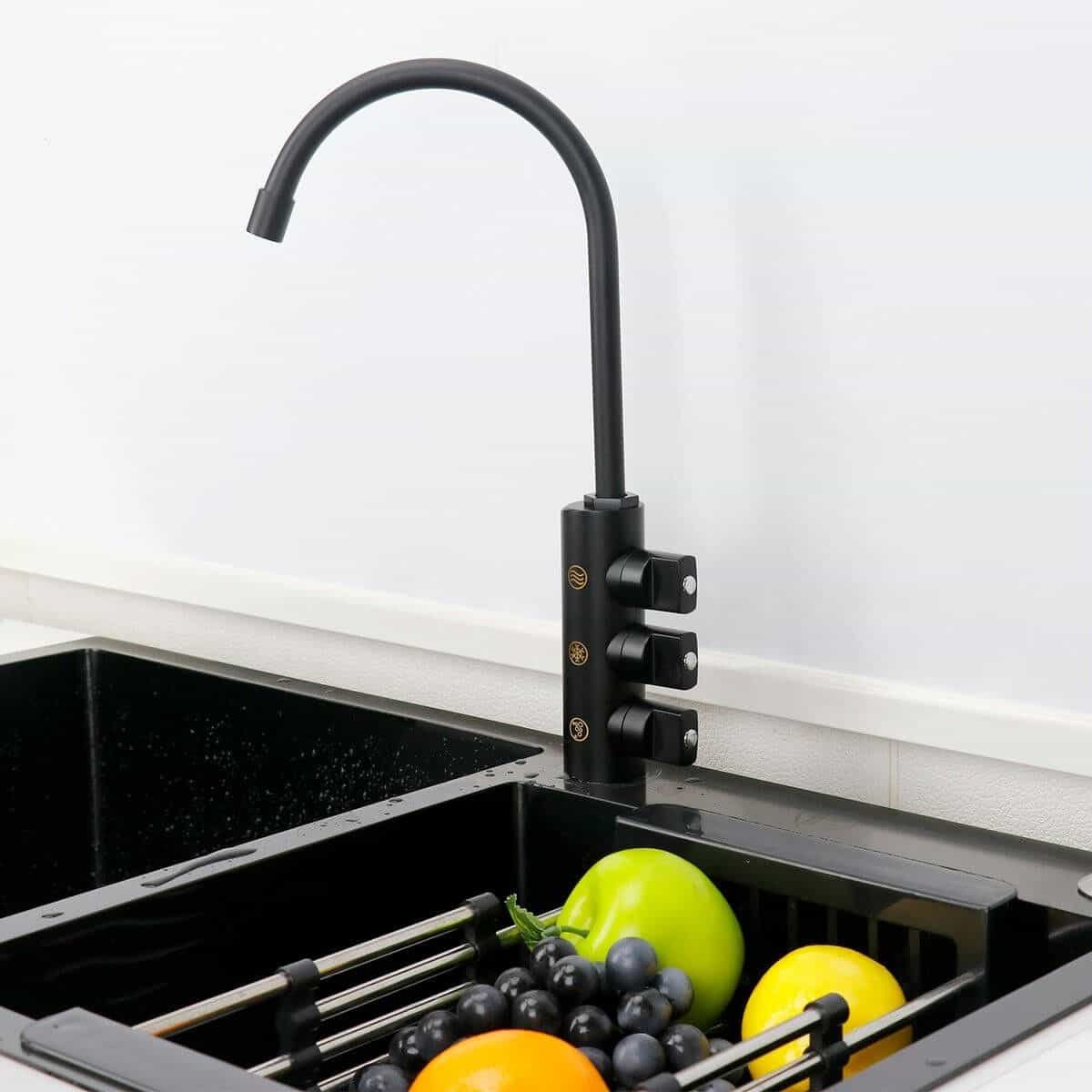 - DOGO modernus 3 kanalų maišytuvas, kuris gali būti jungiamas su Osmoso vandens sistema, yra puikus sprendimas jūsų virtuvės vandeniui.