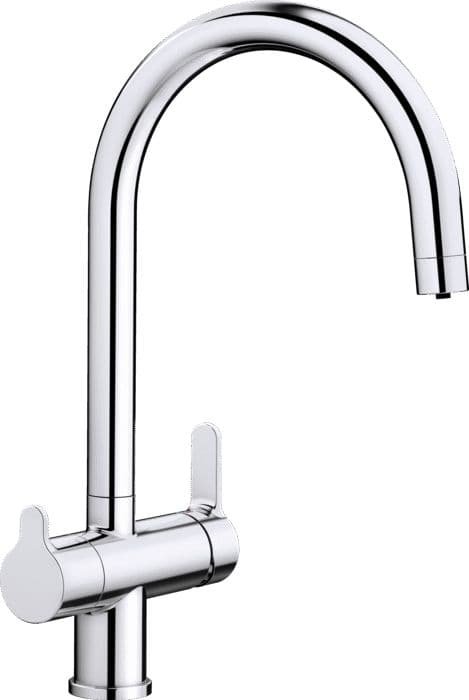 • Patogus maišytuvas “3-in-1” su šalto ir šilto vandens svirtimi dešinėje ir filtruoto vandens svirtimi kairėje.