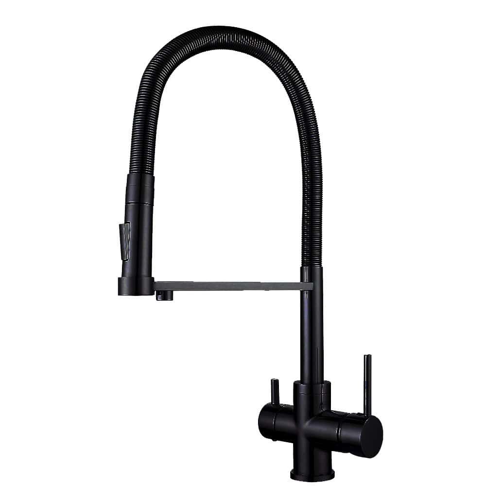 Ištraukiamas 3 krypčių virtuvės maišytuvas (karštas vanduo, šaltas vanduo, filtruotas vanduo)